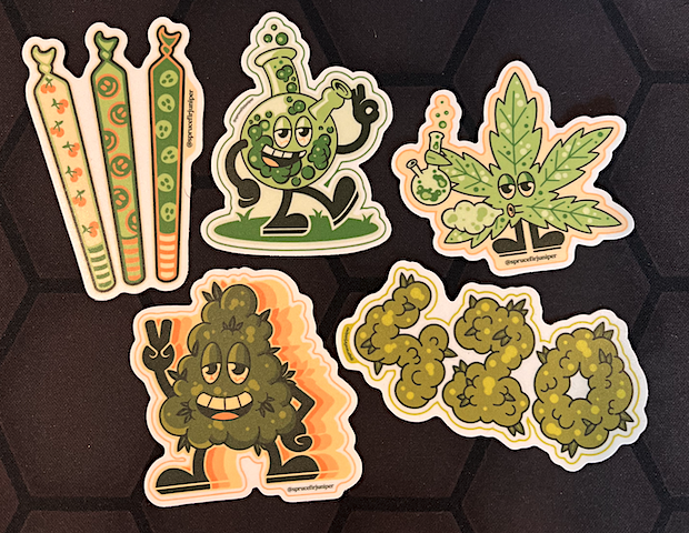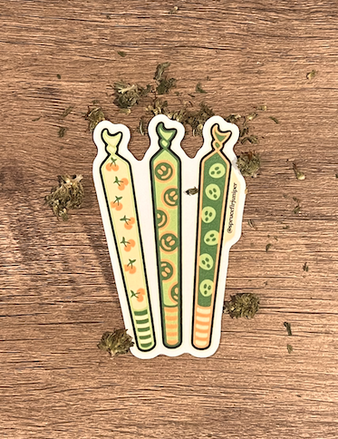 Snag the full 5-sticker pack or pick your favorites individually—these chill designs are made to match your vibe. Each sticker is printed on high-quality waterproof vinyl, featuring unique artwork made to last through smoky nights, rainy hikes, and everything in between. Stick ‘em where the mellow takes you.